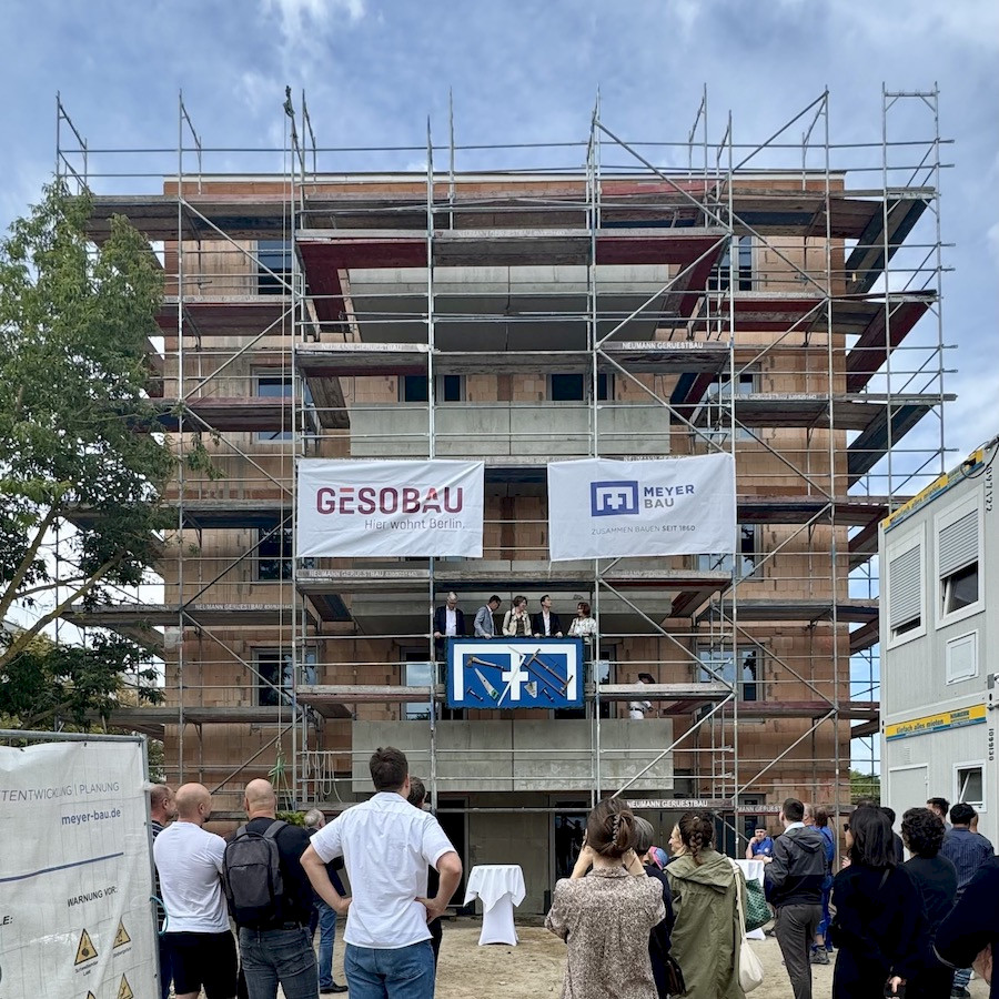 Wir haben gemeinsam mit unseren Projektpartner:innen einen wichtigen Meilenstein unseres Projektes Schloßstraße/ Königsweg gefeiert: Das Gebäude steht – jetzt geht’s ans Innenleben!