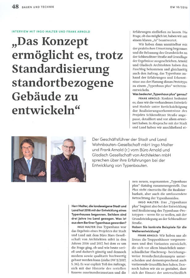 In einem Interview sprechen Frank Arnold und Ingo Malter über die Erfahrungen bei der Entwicklung von Typenhausbauten, etwa im Projekt Typenhaus Schkeuditzer Straße.
