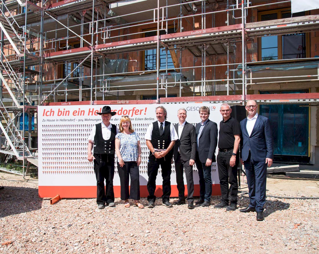 Nach der Grundsteinlegung 2018 erfolgte nun am 5. Juni 2019 das Richtfest am Standort Lion-Feuchtwanger-Straße 19/21 Gadebuscher Str. 25/27. Bei 35 Grad haben Arnold und Gladisch Architekten zusammen mit der Bauherrin – der GESOBAU AG – und den beteiligten Projektpartnern sowie Vertretern von Bezirk und Senat in Berlin Hellersdorf Richtfest gefeiert.