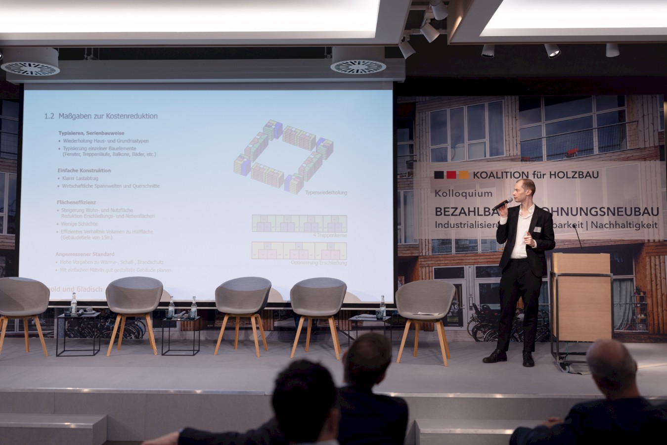 Auf dem Kolloquium zum "Bezahlbaren Wohnungsneubau" am 12. April 2024 legte Axel Schmidt dar, wie sich größtmögliche Standardisierung einerseits und Wahrung gestalterischer Spielräume andererseits vereinbaren lassen.