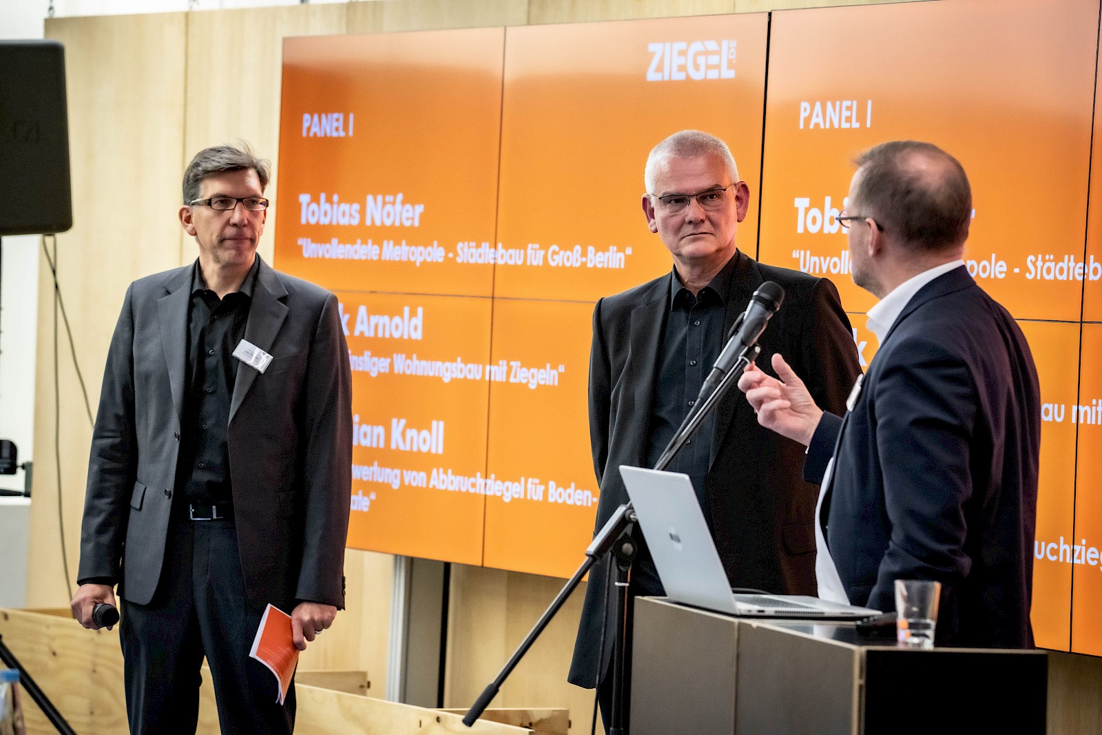 Frank Arnold, Geschäftsführer von Arnold und Gladisch, war einer der Referent:innen der diesjährigen Professor:innen-Praxistage des Bundesverbandes der Deutschen Ziegelindustrie (BVZi) am 16. September 2022 an der TU Berlin. Mit seinem Beitrag über "Kostengünstigen Wohnungsbau mit Ziegeln" anhand einiger exemplarischer Projekte wie der Kastanienallee in Berlin-Hellersdorf und der Fließstraße in Berlin-Schöneweide zog er das Publikum in seinen Bann und illustrierte, welche Bedeutung neben einer materialgerechten Planung die Vergabeverfahren für Kosten, Bauzeit und schlussendlich Qualität haben können.