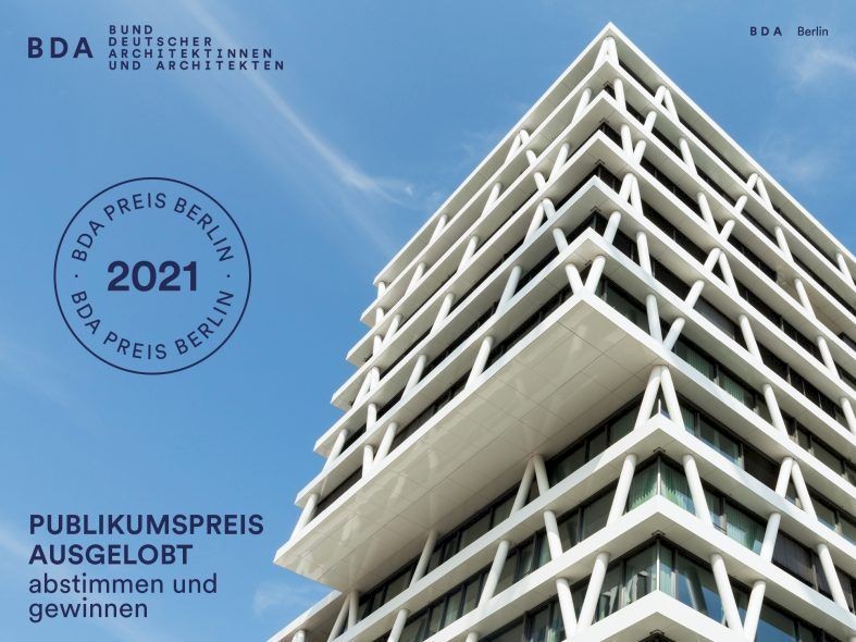 Der BDA Berlin lobt im Rahmen des BDA PREIS BERLIN 2021 den Publikumspreis aus. Bis zum 5. Januar 2022 können Sie auf https://bda-preis-berlin.de/ abstimmen! Für den Publikumspreis können pro Person jeweils bis zu drei Bauten vorgeschlagen werden. Das Projekt, das bis zum 5. Januar 2022 die meisten Stimmen erhält, wird ausgezeichnet.