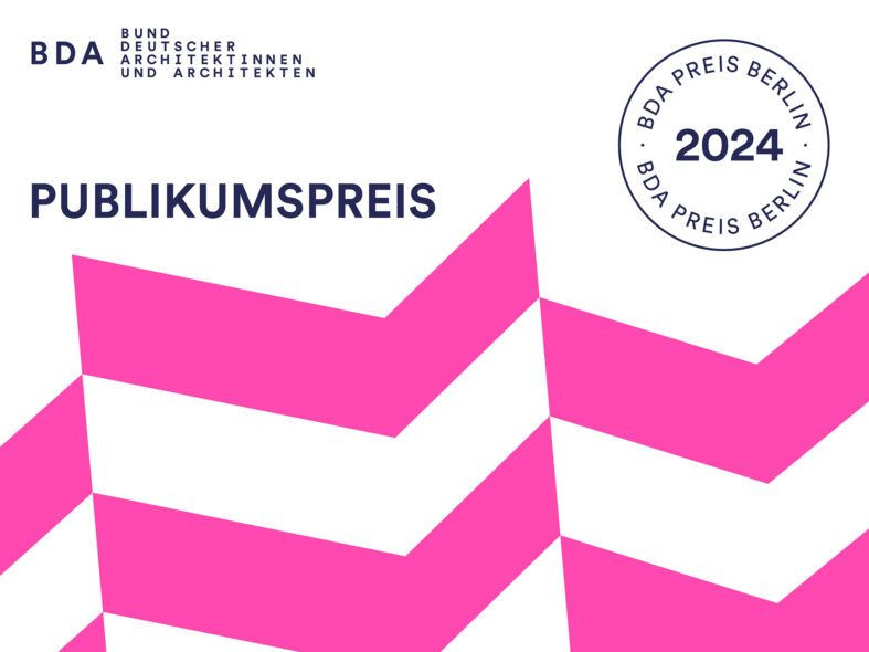 Im Rahmen des BDA PREIS BERLIN 2024 lobt der Bund Deutscher Architektinnen und Architekten Landesverband Berlin e.V. seinen Publikumspreis aus. Ziel ist es, das öffentliche Bewusstsein für die Qualität des Planens und Bauens in Verantwortung für Gesellschaft und Umwelt zu fördern. Alle an Architektur Interessierten sind eingeladen, sich vom 11. September bis zum 20. Oktober 2024 ihr Urteil zu den eingereichten Architekturprojekten zu bilden und ihre Favoriten auszuwählen.