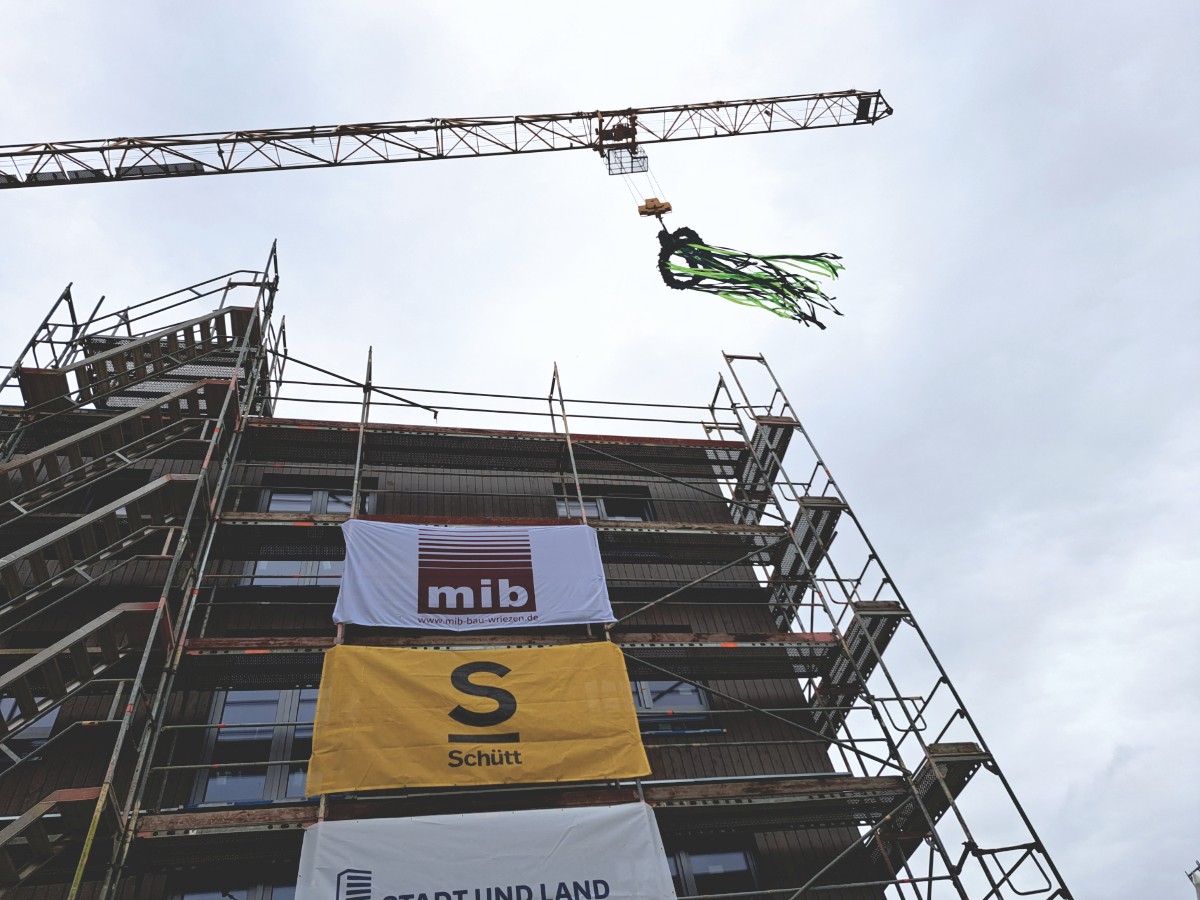 Gemeinsam mit Vertreterinnen und Vertretern von Senat und Bezirk, Projektpartnerinnen und -partnern sowie geladenen Gästen feierten wir am 19. Juni Richtfest des ersten STADT UND LAND TYPENHAUSeco auf den Buckower Feldern.