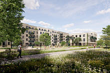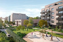 Bauherr | STADT UND LAND WBG mbH | Fläche BGF (gesamt) | 14.100 m² | Zeitraum | 2017-2019 | Leistung (LPH) | 1-5 + 8, Wettbewerb 1. Preis |