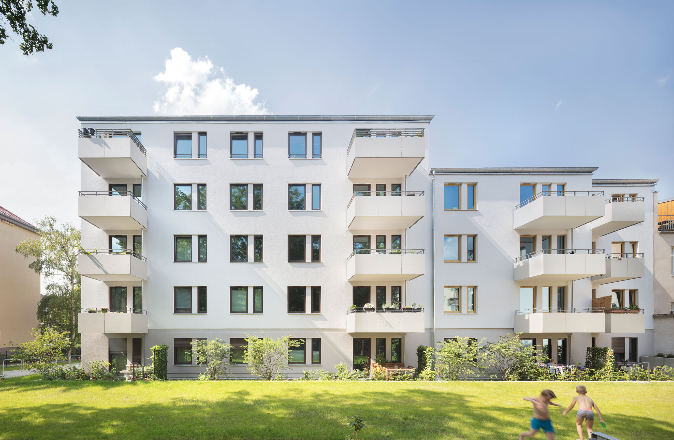 Neubau eines Wohngebäudes. 22 WE. EnEV 2014. Schließt auf der Nordseite in gleicher Bautiefe an das Nachbargebäude an. Verputzte Fassaden und Fenster in stehenden Formaten wurden gemäß der städtebaulichen Erhaltungssatzung geplant. Großzügige Außenanlagen bieten Platz für Erholungs- und Spielflächen.